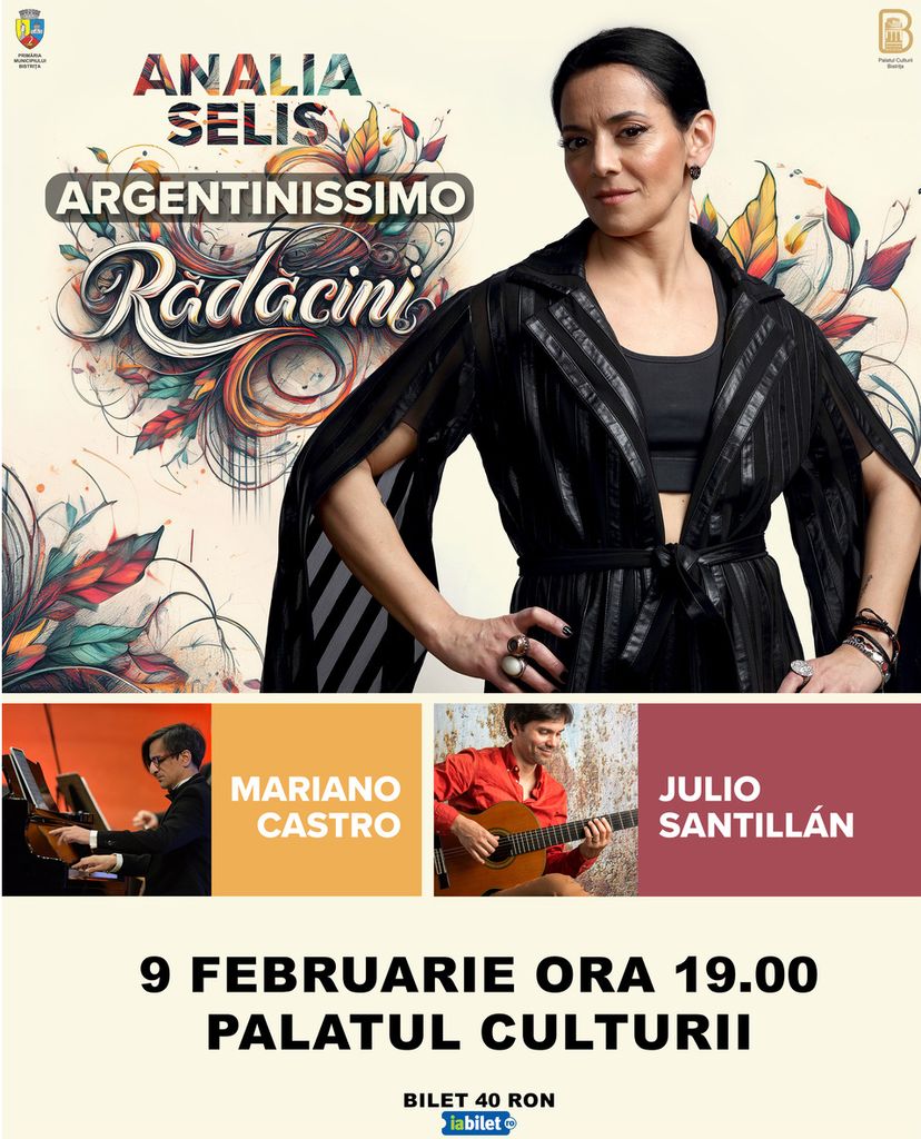 Analia Selis, artista originară din Argentina, va susține un concert special la Palatul Culturii, duminică, 9 februarie, începând cu ora 19.00. Evenimentul îi va avea ca invitați pe chitaristul Julio Santillan și pianistul Mariano Castro, acesta din urmă fiind dublu nominalizat la Latin Grammy Awards.