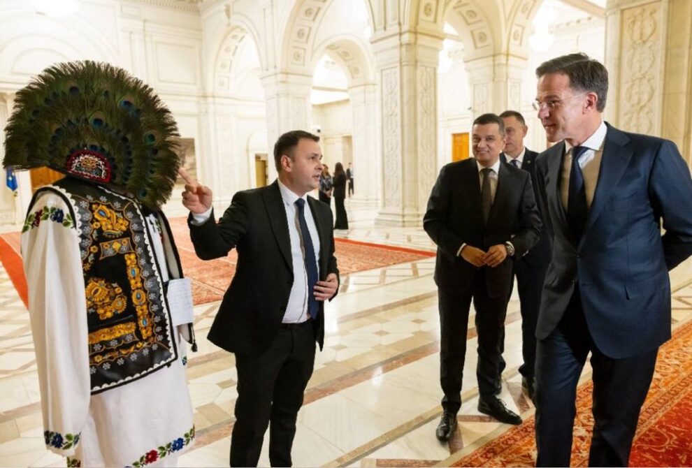 Daniel Suciu i-a arătat lui Mark Rutte costumul cu pană de păun din Bistrița-Năsăud